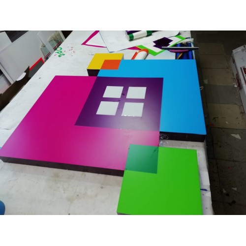 Объемные буквы и объемный логотип с подсветкой светодиодами, оклеенные цветной транслюцентной пленкой оракал