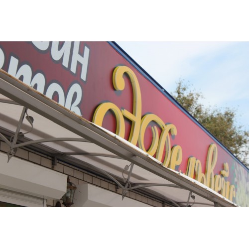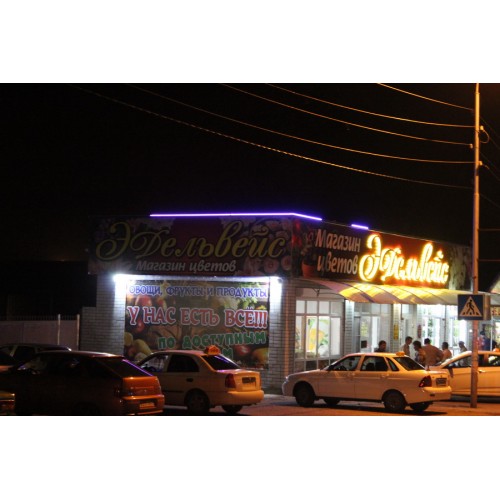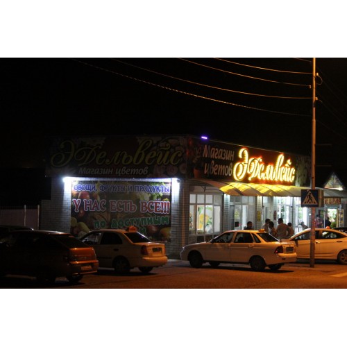 Псевдообъемные буквы ПВХ, окрашенные автомобильной, на дистанционных держателях с контражурной подсветкой